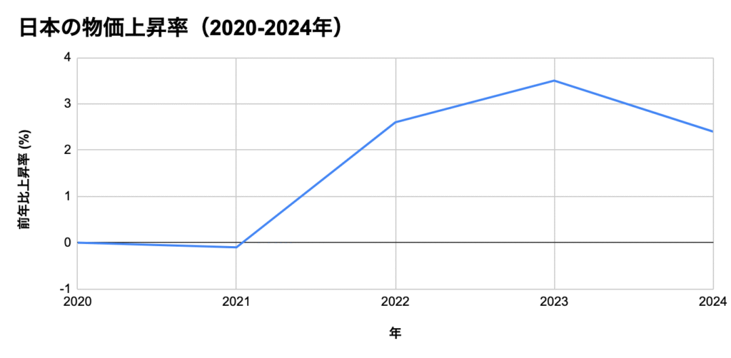 図1: 日本の物価上昇率(2020-2024年、総務省統計局)