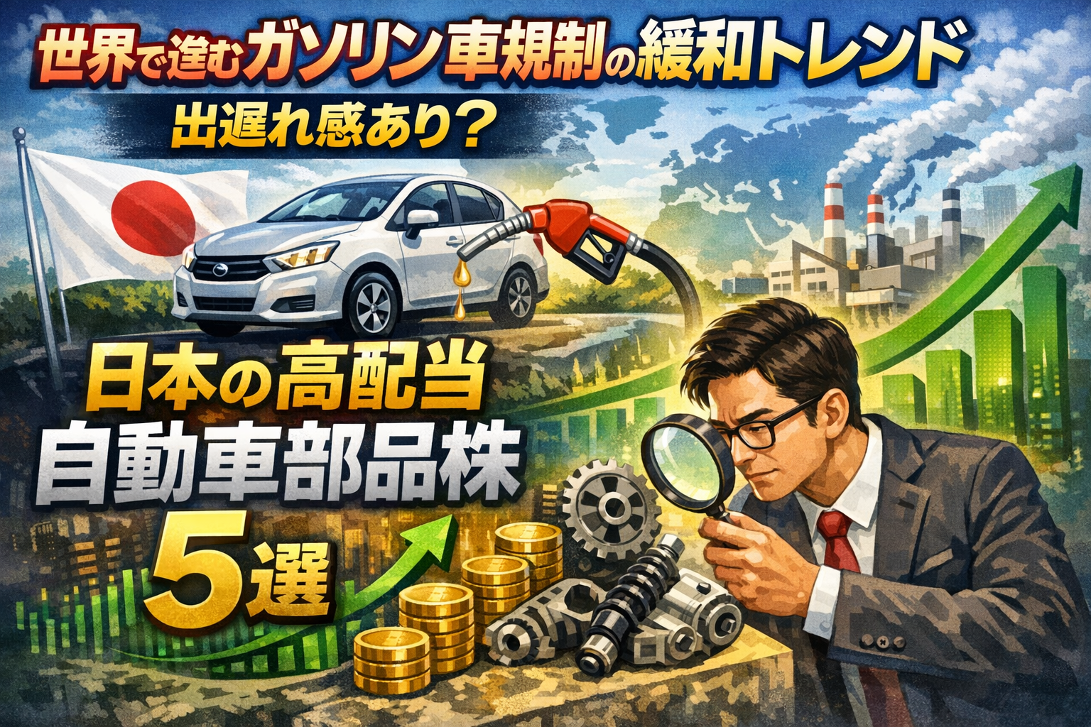 上記5銘柄は配当利回り3%前後の高配当ゾーンが多く、規制緩和の恩恵を長期で受けやすいです。 ただ、為替変動や原材料高、EVシフトの長期リスクなどは残ります。 投資は自己責任で、最新ニュースをチェックしてください。
